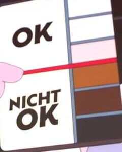Die wird dann neben einen beliebigen Kopf gehalten um festzustellen ob die Person OK ist oder NICHT OK ist.